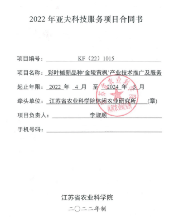 近日,金杉生態(tài)環(huán)境科技(南京)有限公司與江蘇省農(nóng)科院休閑農(nóng)業(yè)研究所聯(lián)合推動的<‘金陵黃楓’產(chǎn)業(yè)技術(shù)推廣及服務(wù)>成功申報2022年亞夫科技服務(wù)項目。